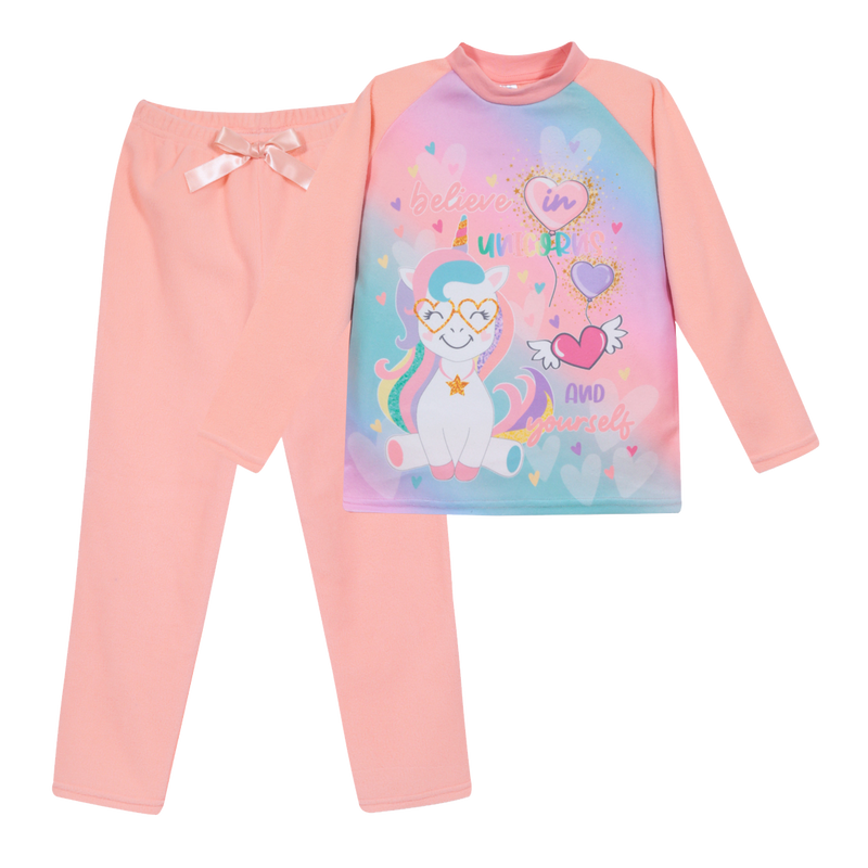 Pijama de 2 piezas para niñas en tela 100 % Poliéster,delantero completamente sublimado con motivo H2O Wear Believe in yourself,manga larga, cuello de rib para mayor comodidad en el calce, pantalón de polar, tela 100% poliéster con suave elástico en la cintura y cinta decorativa. Disponible en tallas 4,6,8,y 10. Para prolongar su durabilidad lavar con agua tibia,detergente suave y no planchar.Nuestra marca H2O Wear esta permanentemente preocupada de desarrollar productos cómodos y de alta calidad. Todo el espíritu de nuestra marca lo da un innovador equipo de personas que en cada temporada está creando nuevos conceptos para sus prendas.