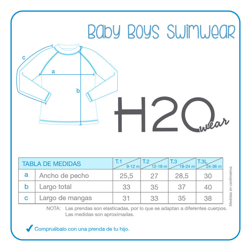 Polera Manga Larga Proteccion UV50 H2O Wear, cierre en espalda. Contenido del Paquete: Polera UV. Material: 85% Poliéster 15% Elastano 220 grs / 82% Poliamida 18% Elastano, 200 gr/ UV50. Revise y compare nuestra tabla de medidas, para lograr recibir el producto que necesita. Los productos H2O Wear, buscan satisfacer las necesidades de cada uno de nuestros clientes y entregarles productos con diseños, confort y protección para cada una de las etapas. Lo que nos mueve, es el interés de acompañarlos en su mejores momentos.